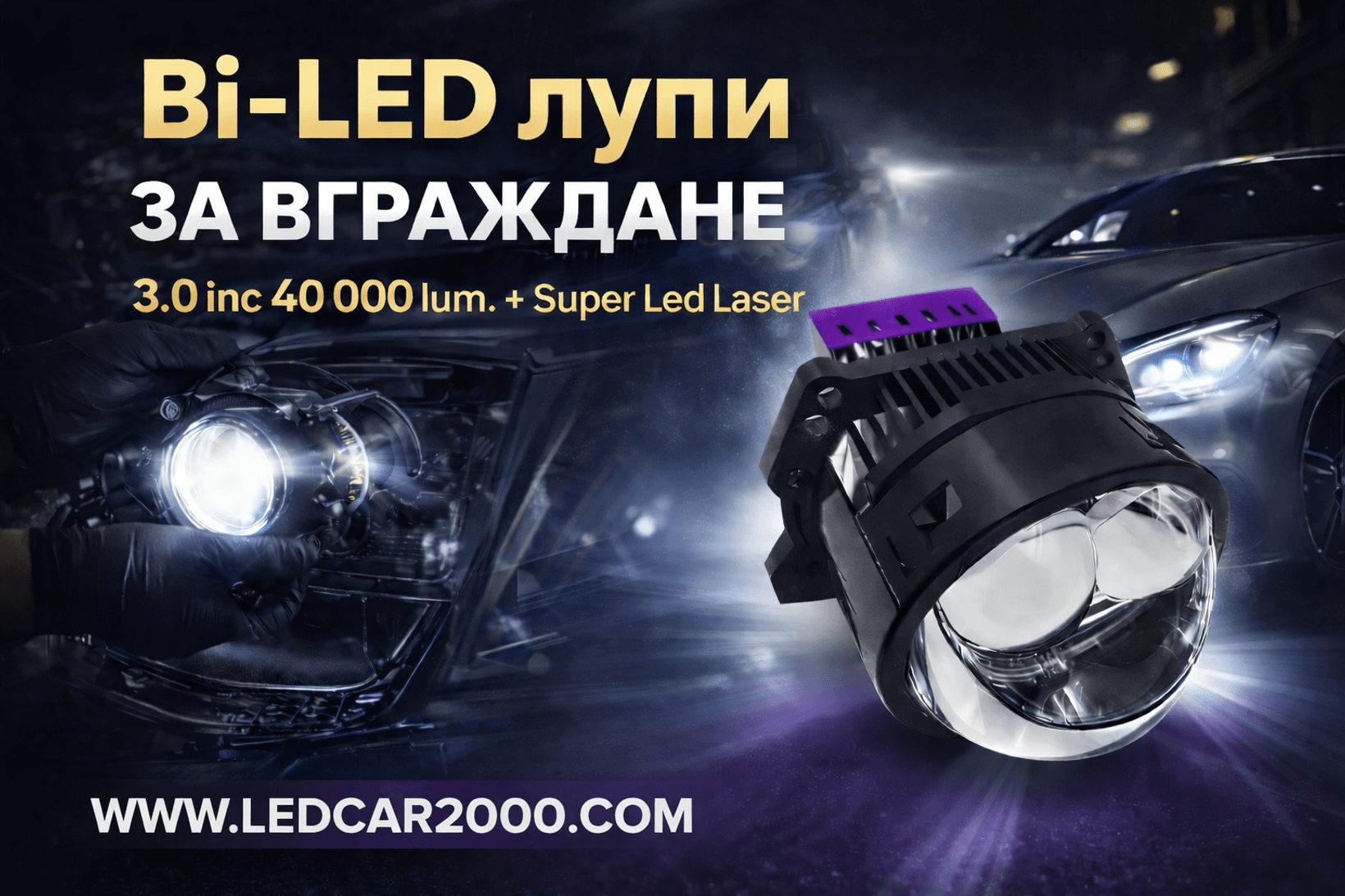 Лед лупи за вграждане с вградени лед G-XP чипове, няма нужда от крушки. Лупата работи както на къси, така и на дълги светлини. Диаметър на оптиката е 3 инча